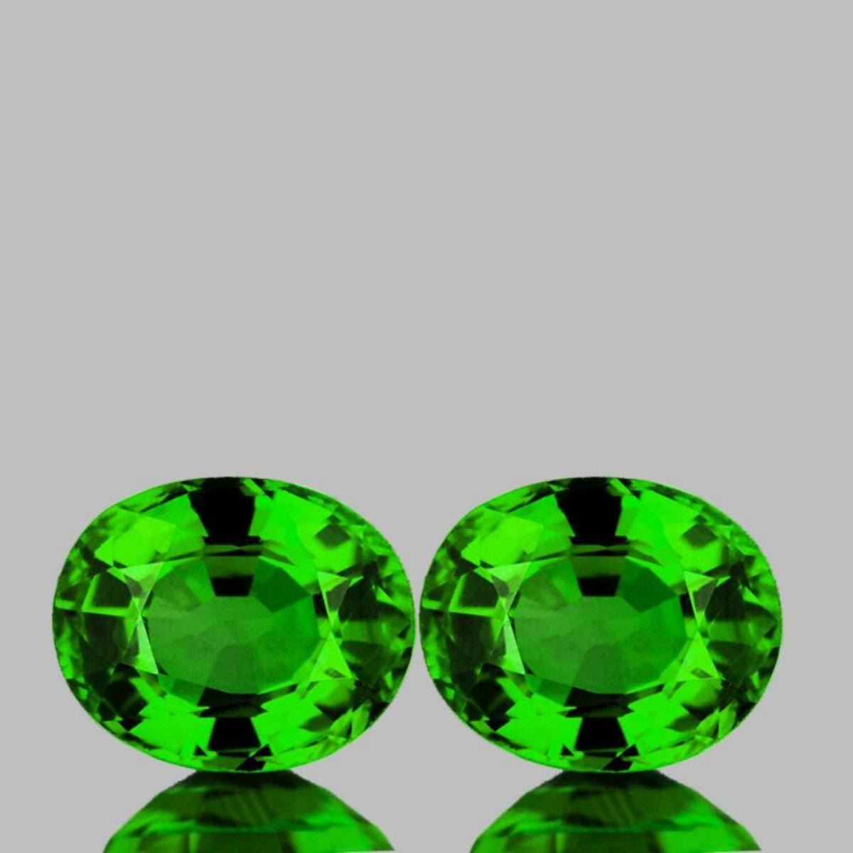 Natural Green Garnet (Tsavorite) SHAPE : Oval; SIZE ( L x W x D ) : 5.80 x 4.70 mm; QUANTITY : 2 pieces (Perfect Maching Pair) COLOR : Chrome Green AAA Color; CLARITY : Flawless-VVS AAA Grade; ORIGIN : Tanzania; HARDNESS : 7; LUSTER : Excellent!!! TREATMENT : 100% Natural Unheated