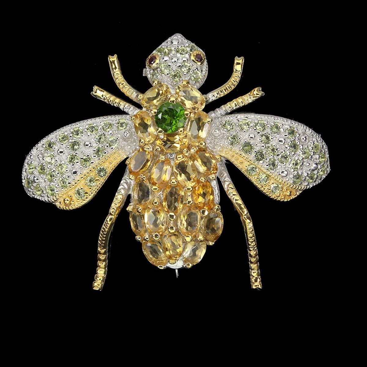 925 STERLING SILVER;PLATE-2-TONE WHITE & YELLOW 14K GOLD;MAIN STONE-CITRINE;;OTHER GEMSCHROME DIOPSIDE, PERIDOT, RHODOLITE GARNET;TOTAL WEIGHT-11.97 GRAM (TOTAL WEIGHT OF SILVER + STONE)DIMENSION* STONE 1.5 TO 5.0 X 3.0 MM. * FACE BROOCH 48.0 X 40.0 MM.MAIN STONE SHAPE-OVAL CUT;MAIN STONE COLOR-TOP RICH YELLOW;CLARITY/GRADE-IF TO VVS;LUSTER-PRECIOUS;TREATMENT-UNHEATED;ORIGIN-BRAZIL;HARDNESS-5.0 - 7.5