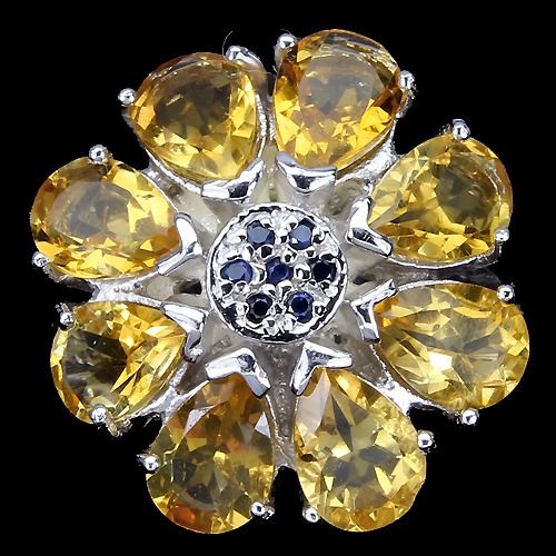 CITRINE SAPPHIRE (NATURAL) 14K WHITE GOLD COATING 925 SILVER RINGUNIT OF ITEM (S):1 PIECEWEIGHT (CT.):43.60 CT. (total weight of silver + stone)DIMENSION:* STONE 1.0 TO 7.0 X 5.0 MM. * RING SIZE 7.0; * FACE RING 20.0 MM.SHAPE/CUT:PEAR ROUND FACETCOLOR:TOP RICH YELLOW TOP DEEP BLUECLARITY/GRADE:IF TO VVS OPAQUELUSTER:ELEGANTTREATMENT:UNHEATED HEATEDORIGIN:BRAZIL AFRICAHARDNESS:7.0 - 9.0