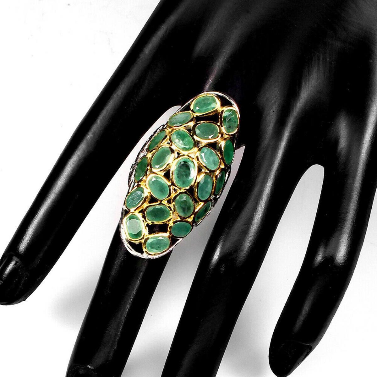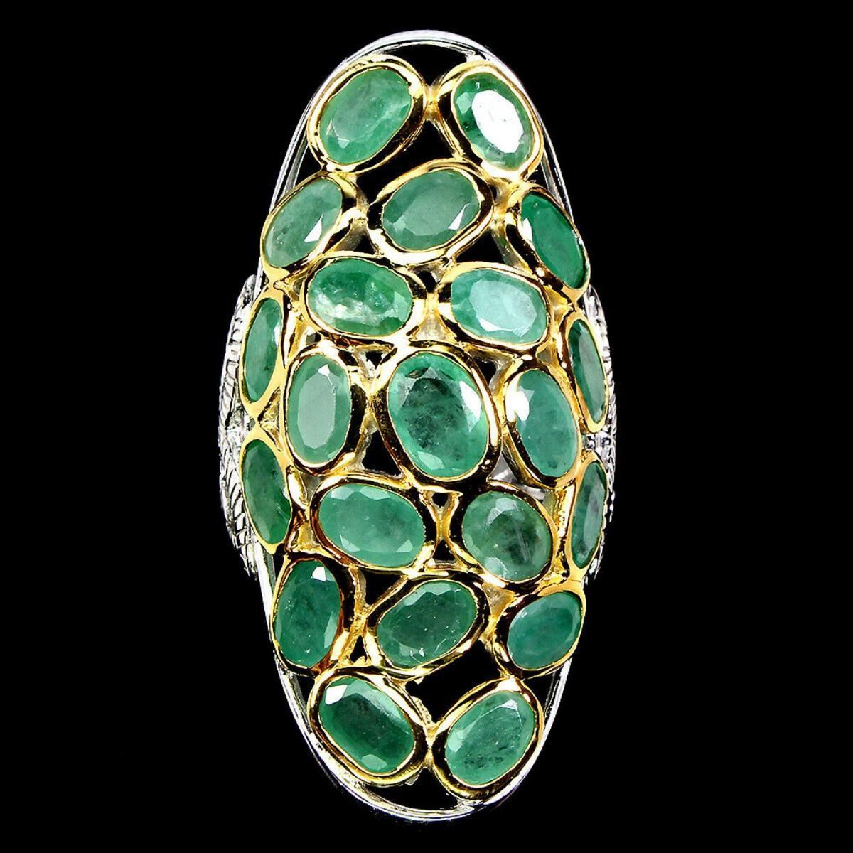 2-TONE WHITE & YELLOW 14K GOLD; RING SIZE -7(resizeable); MAIN STONE -EMERALD; TOTAL WEIGHT -11.06 GRAM (TOTAL WEIGHT OF SILVER + STONE) DIMENSION * STONE 6.0 X 4.0 TO 7.0 X 5.0 MM. * FACE RING 44.0 X 21.0 MM. MAIN STONE SHAPE -OVAL CUT; MAIN STONE COLOR -TOP RICH GREEN; CLARITY/GRADE -TRANSPARENT; LUSTER -GORGEOUS; TREATMENT -UNHEATED; ORIGIN -Columbia HARDNESS -7.5 - 8.0