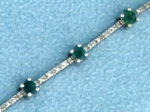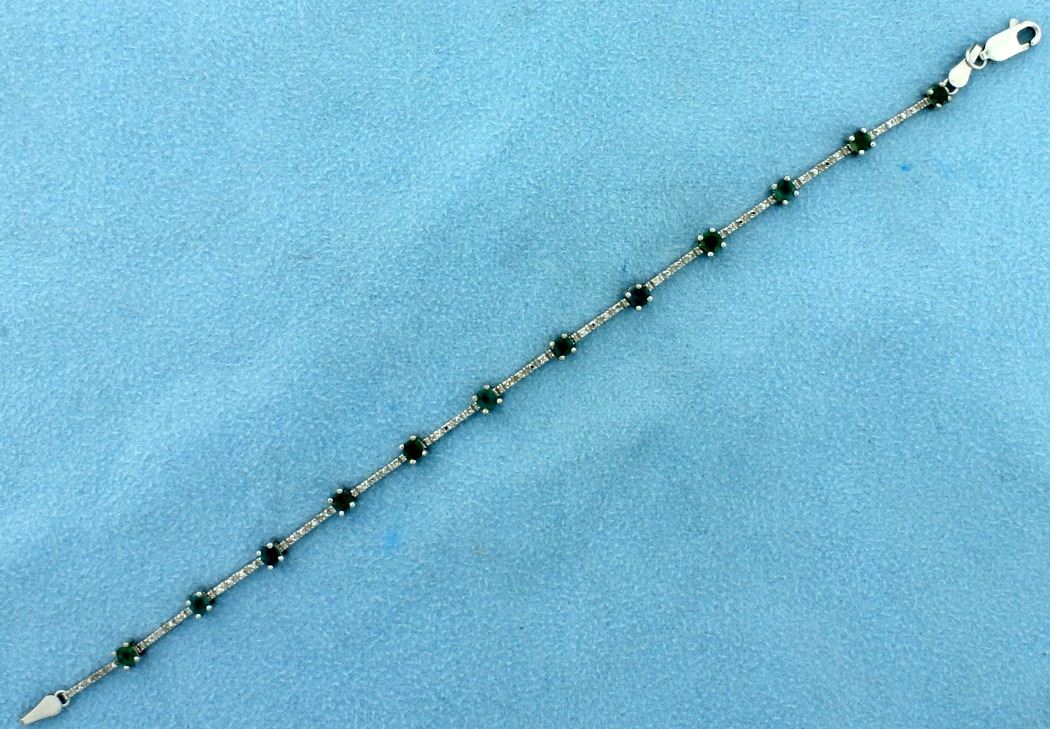 In 14k white gold. Contains eleven 3mm round Natural Alexandrite Gemstones that color change from green to red depending on light source. Also contains twenty four high quality 1/2pt diamonds. 7 1/4" long. 5.3g.