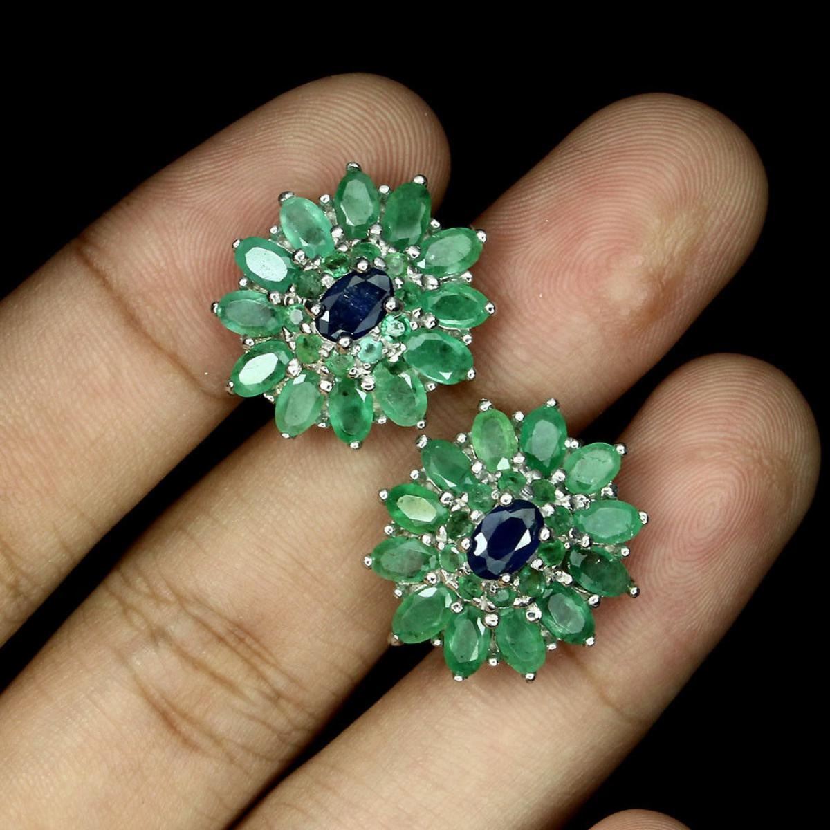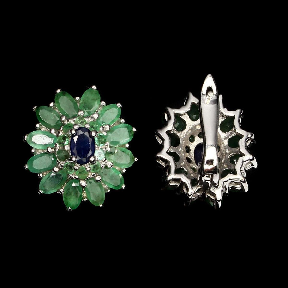 925 STERLING SILVER;PLATE...14K WHITE GOLD;MAIN STONE-SAPPHIRE;OTHER GEMS-EMERALD;TOTAL WEIGHT44.66 CT (TOTAL WEIGHT OF SILVER + STONE)DIMENSION* STONE 2.0 TO 6.0 X 4.0 MM. * FACE EARRINGS 20.0 X 19.0 MM.MAIN STONE SHAPE-OVAL CUT;Sapphire COLOR-TOP RICH BLUE;