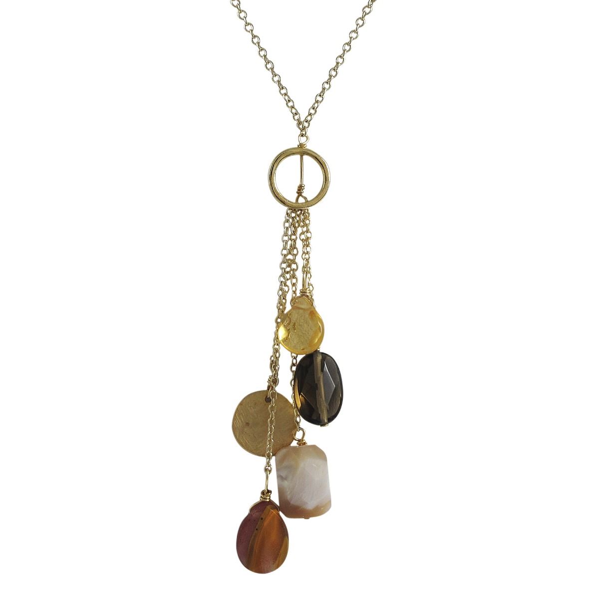 Natural Combination Semi Precious Stones Lariat Style On Gold Plated Sterling Silver Chain -16" 2"