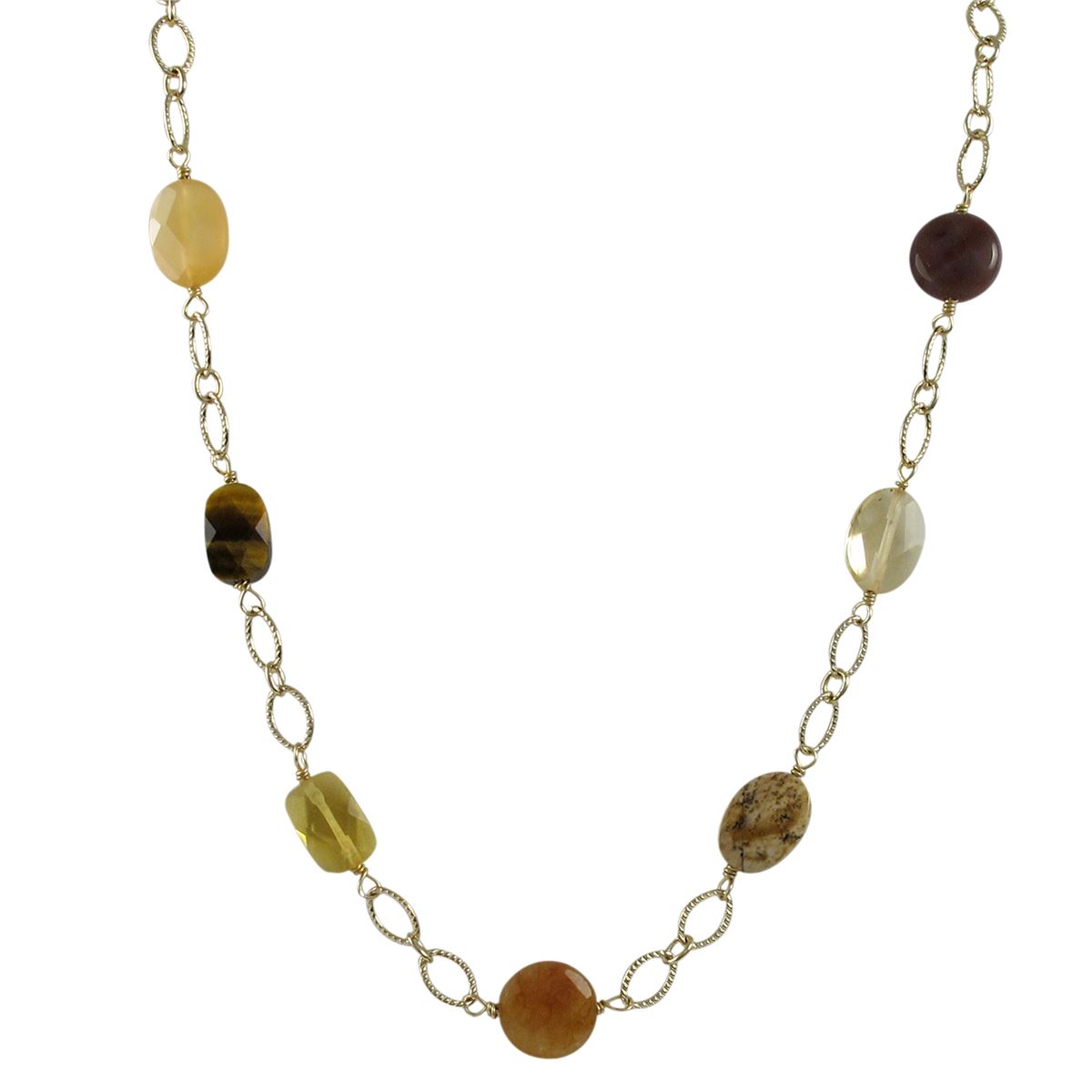 Natural Combination Semi Precious Stones On Gold Tone Brass Chain- 16" 3"