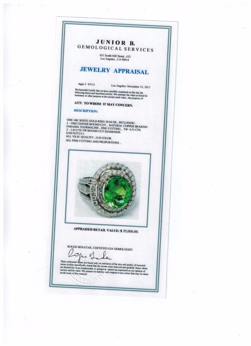 Natural Copper Bearring Paraiba Tourmaline 4.51ct / Diamond 1.65ct / 18k White Gold Ring 10.64gram