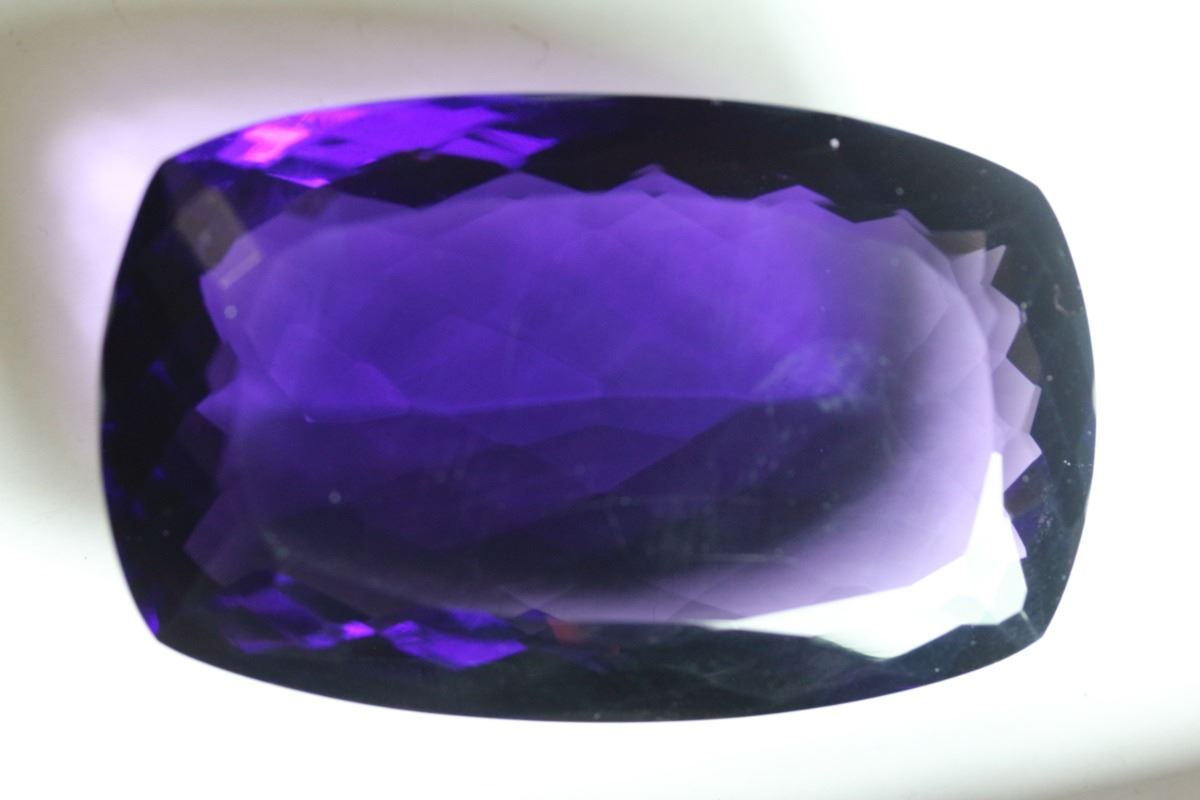 Natural Cushion Amethyst 525.10 carats - VVS.....Treatment:UnHeated; Color:Purple ; Luster:Fabulous; Clarity:VVS; Origin: Brazil; Qty:1; Stone Hardness:7; Amethyst is a powerful and protective stone. It guards against psychic attack, transmuting the energy into love and protecting the wearer from all types of harm, including geopathic or electromagnetic stress and ill wishes from others. Amethyst is a natural tranquiliser, it relieves stress and strain, soothes irritability, balances mood swings, dispels anger, rage, fear and anxiety. Alleviates sadness and grief, and dissolves negativity. Amethyst activates spiritual awareness, opens intuition and enhances psychic abilities. It has strong healing and cleansing powers. Amethyst encourages sobriety, having a sobering effect on overindulgence of alcohol, drugs or other addictions. It calms and stimulates the mind, helping you become more focused, enhancing memory and improving motivation. Amethyst assists in remembering and understanding dreams. It relieves insomnia. Encourages selflessness and spiritual wisdom.Amethyst boosts hormone production, tunes the endocrine system and metabolism. It strengthens the immune system, reduces pain and strengthens the body to fight against cancer. It destroys malignant tumours and aids in tissue regeneration. Cleanses the blood. Relieves physical, emotional and psychological pain or stress. Amethyst eases headaches and releases tension. It reduces bruising, swellings, injuries, and treats hearing disorders. Amethyst heals diseases of the lungs and respiratory tract, skin conditions, cellular disorders and diseases of the digestive tract.