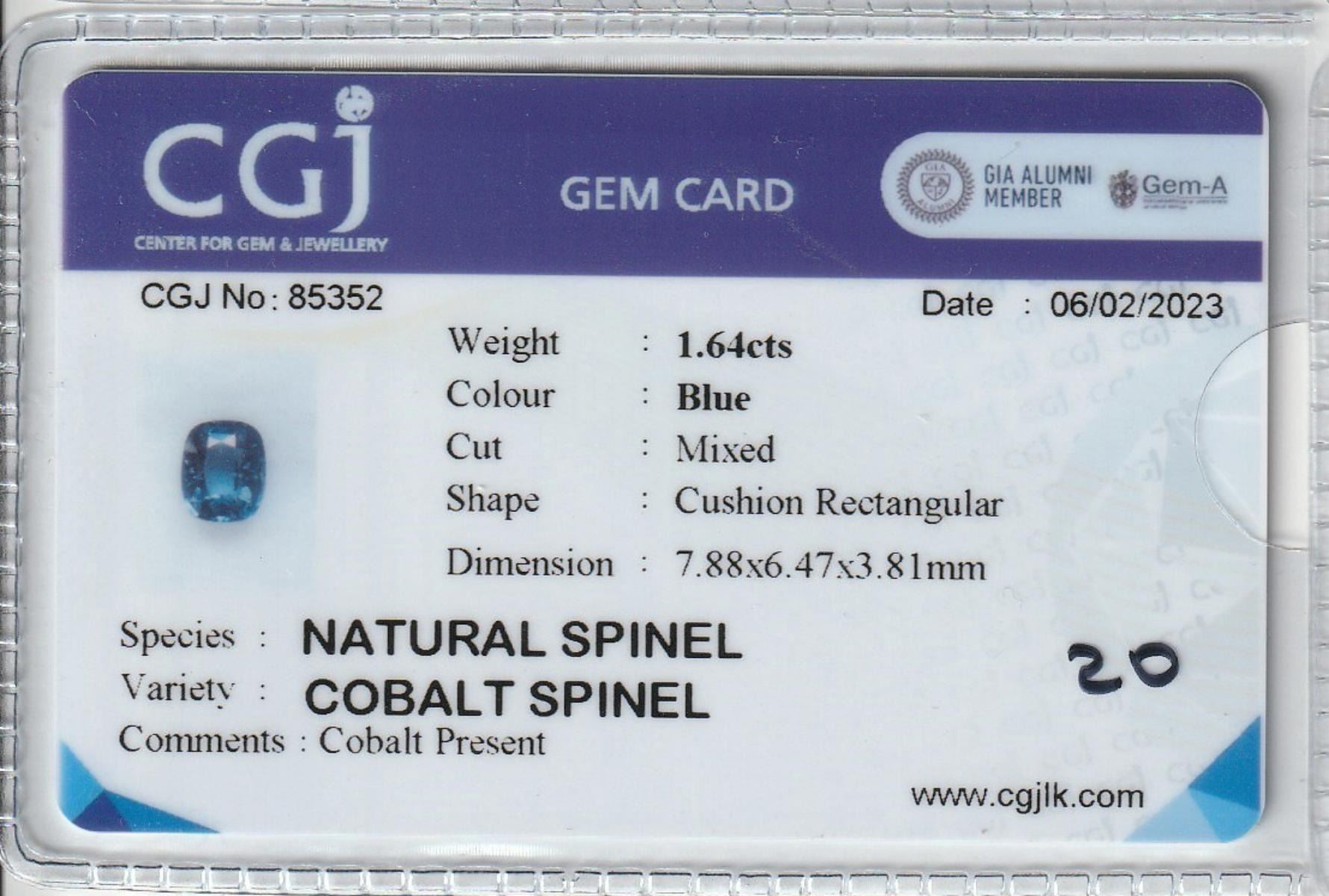 Natural Cushion Cobalt Blue Spinel 1.64 Cts- Untreated; Size - 7.88 x 6.47 MM; Completely untreated ; Origin - Vietnam;