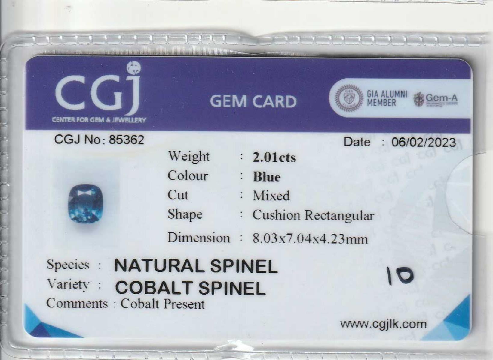 Natural Cushion Cobalt Blue Spinel 2.01 Cts- Untreated; Size - 8.03 x 7.04 MM; Eye Clean; Completely untreated ; Origin - Vietnam;