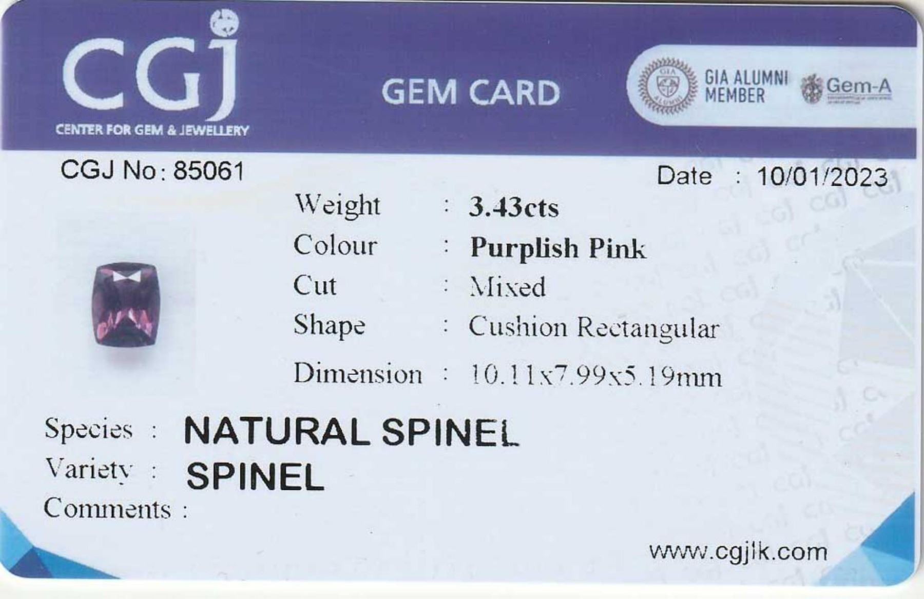 Natural Cushion Pink Spinel 3.43 Cts ; size 10.11 x 7.99 MM; Color Purple/Pink; Origin - Sri Lanka;