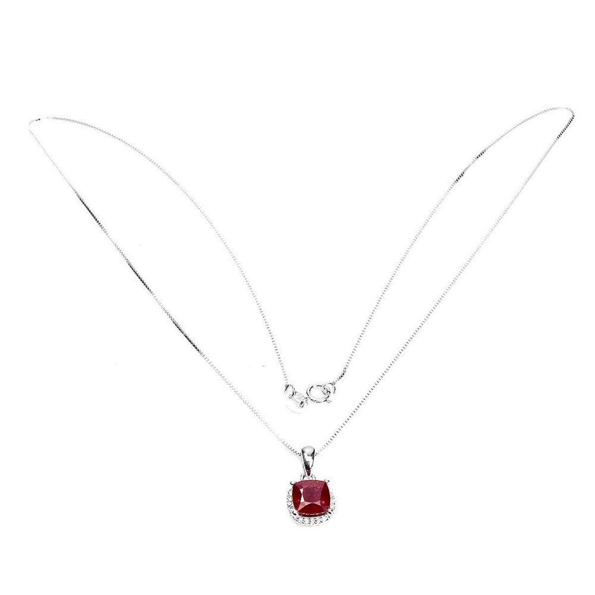 925 STERLING SILVER;PLATE-14K WHITE GOLD;LENGTH (INCHES)18;MAIN STONE-RUBY;TOTAL WEIGHT-2.63 GRAM (TOTAL WEIGHT OF SILVER + STONE)DIMENSION-* STONE 7.0 MM. * CZ 1.0 MM. * TOTAL LENGTH 18.0 INCHES. * STONES PART LENGTH 17.0 X 9.0 MM.;MAIN STONE SHAPE-CUSHION CUT;MAIN STONE COLOR-TOP BLOOD RED;es;ORIGIN-MADAGASCAR;HARDNESS-9;
