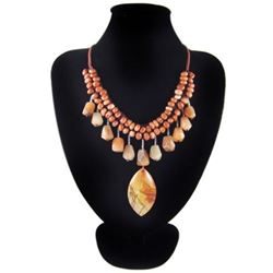 Necklace Size Ajutable 19-31 inch (if range given) *Stone Name Multi-Color Picasso *Stone Overall Dimension for each bead 60x34x6 mm (2.362x1.339x0.236 inch ) *Weight 515 ct/ 103 g/ 3.633222 oz*Handcrafted knot chainOther Stones used in this Necklace Red Chalcedony*Center Stone Properties *Locality unknown *Appearance opaque *Color Red green - yellow Orange *Mohs Hardness 6 *Source Natural *Treatments None *Drilled YES diameter 2.5/36-3/36 inch *Other Names~~~~~~~~~(+) Each step of our Lapidary work is under tight quality control . With the best pattern-color combination possible in mind the initial cut was done by experienced lapidary ... The last-step diamond polishing makes the surface of each bead/cab mirror-like glossy that meet the highest standard possible. Finally only those met all quality requirements are selected.