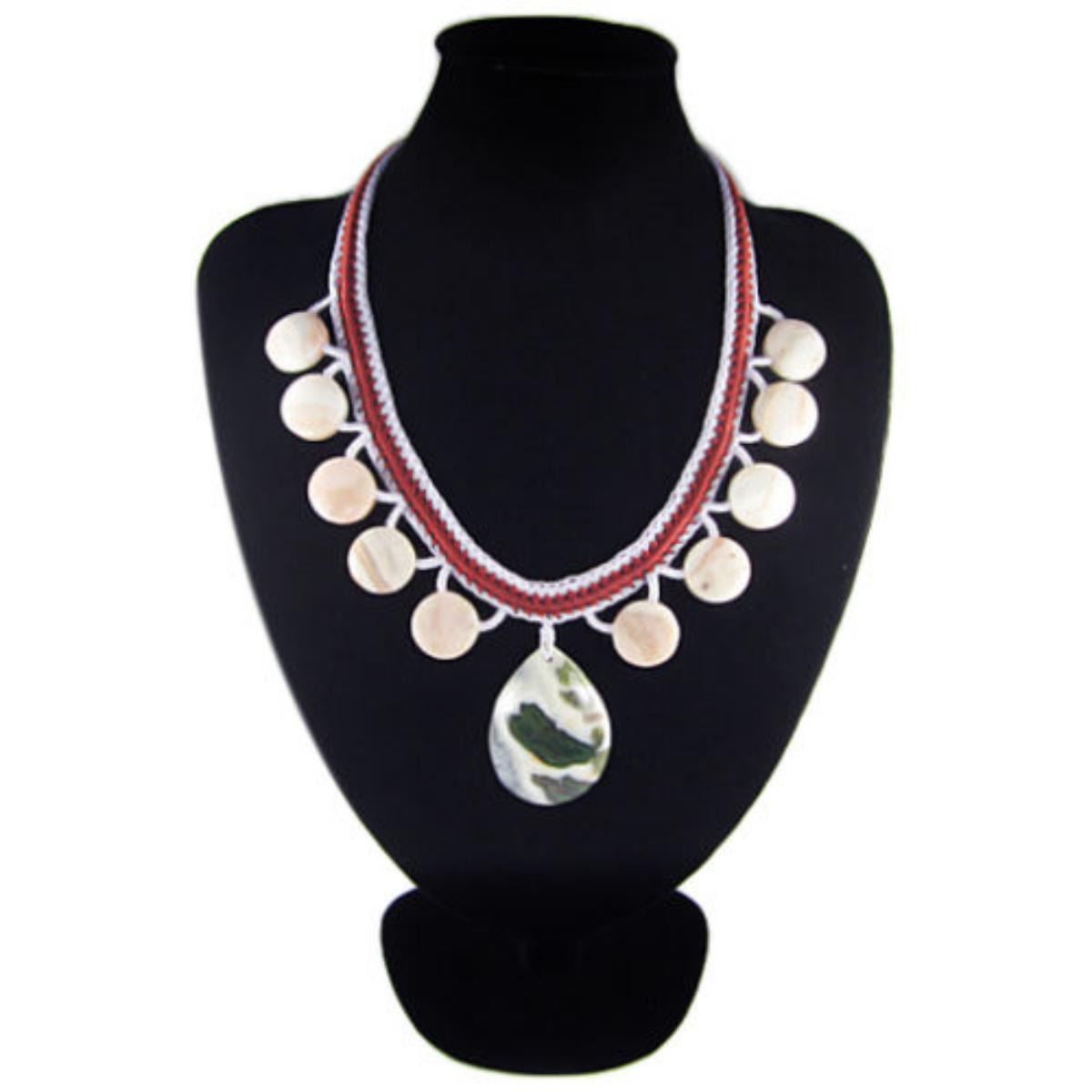 Necklace Size Adjutable 19-29 inch (if range given) *Stone Name Multi-Color Moss Agate *Stone Overall Dimension for each bead 50x37x8 mm (1.969x1.457x0.315 inch ) *Weight 375 ct/ 75 g/ 2.64555 oz*Handcrafted knot chainOther Stones used in this Necklace Morocco Crazy Agate*Center Stone Properties *Locality India *Appearance transparent to semi-transparent *Color Red Green Yellow and others Green *Mohs Hardness 7 *Source Natural *Treatments None *Drilled YES diameter 2.5/36-3/36 inch *Other Names~~~~~~~~~(+) Each step of our Lapidary work is under tight quality control . With the best pattern-color combination possible in mind the initial cut was done by experienced lapidary ... The last-step diamond polishing makes the surface of each bead/cab mirror-like glossy that meet the highest standard possible. Finally only those met all quality requirements are selected.