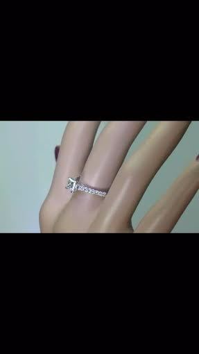 14k White Gold 2.55 carats ...size 6.5; Center Diamond 0.72 carats ...Princess Cut..D/VS...Clarity Enhanced...100% Natural Earth Mined; Side Diamonds 0.30 carats; GIE Certified