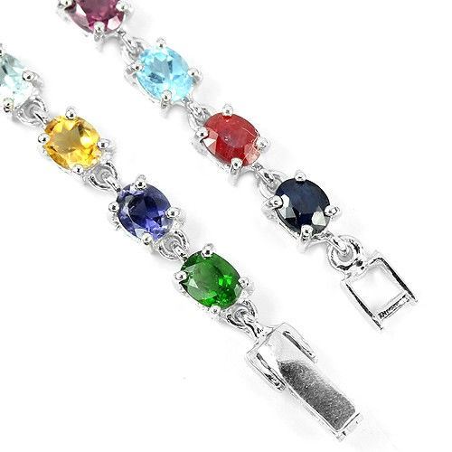REAL EMERALD RUBY SAPPHIRE TOPAZ ZIRCON OPAL CHROME DIOPSIDE PERIDOT CITRINE APATITE925 SILVER BRACELET14K WHITE GOLD COATING; LENGTH OF ITEM (Inch.) 7.25; ITEM QUANTITY --1; STONE SHAPE -OVAL PORTUGUESE CUT OVAL FACET CUT; STONE DIMENSION -5 X 4 MM.; ITEM WEIGHT -;9.8 GRAM; COLOR -MULTI COLOR; CLARITY -;IF-VVS TRANSLUCENT; LUSTER -ENCHANTING; TREATMENT -UNHEATED, IRRADIATION HEATED; ORIGIN OF STONE -AFRICA, COLUMBIA,ASIA BRAZIL'; HARDNESS -5.5 - 9'