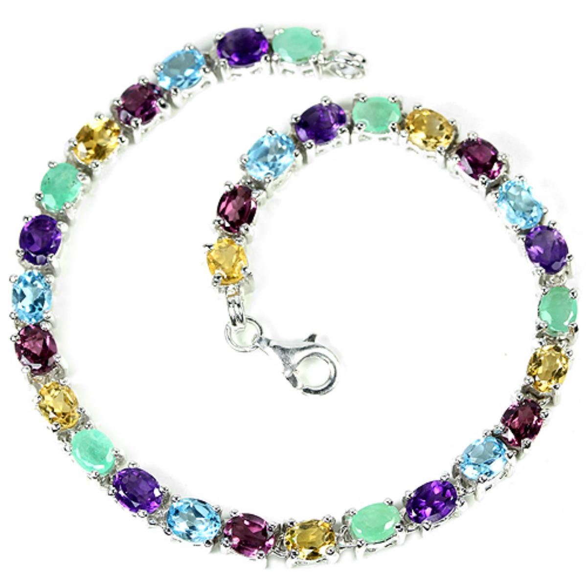 REAL EMERALD TOPAZ AMETHYST CITRINE 925 SILVER BRACELET 14K WHITE GOLD COATING; LENGTH OF ITEM (Inch.) 7.50 ; ITEM QUANTITY -1; STONE SHAPE -OVAL; STONE DIMENSION -5 X 3 MM.; ITEM WEIGHT -12.7 GRAM; COLOR -MULTI COLOR; CLARITY -TRANSLUCENT IF-VS; LUSTER -DAZZLING; TREATMENT -NATURAL UNHEATED IRRADIATION; ORIGIN OF STONE -AFRICA, BRAZIL; HARDNESS -7 - 7.5;