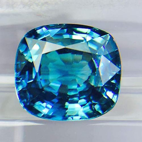 Natural Blue Zircon; WEIGHT : 2.50 cts; SHAPE : Cushion; SIZE ( L x W x D ) : 8.00 x 7.13 x 3.96 mm; QUANTITY : 1 pieces ; COLOR : Top Electric Blue ; CLARITY : Flawless-VVS1 ; ORIGIN : Cambodia; HARDNESS : 7.5; LUSTER : Excellent!!! TREATMENT : UnHeated