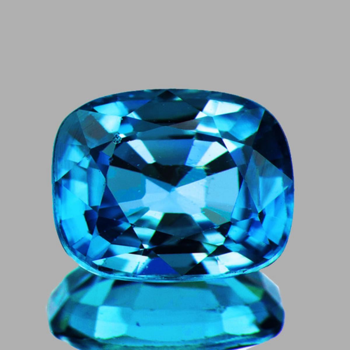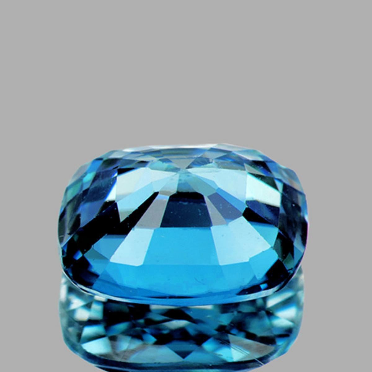WEIGHT : 4.18 cts;STONE NAME : Natural Zircon (Earthly Mined)SIZE ( L x W x D ) : 10.59 x 8.10 x 4.40 mm;COLOR : Electric Blue AAA;SHAPE : Cushion;QUANTITY : 1 piece;CLARITY : Flawless-VVS;HARDNESS : 7.5;ORIGIN : Cambodia; TREATMENT : Heated;