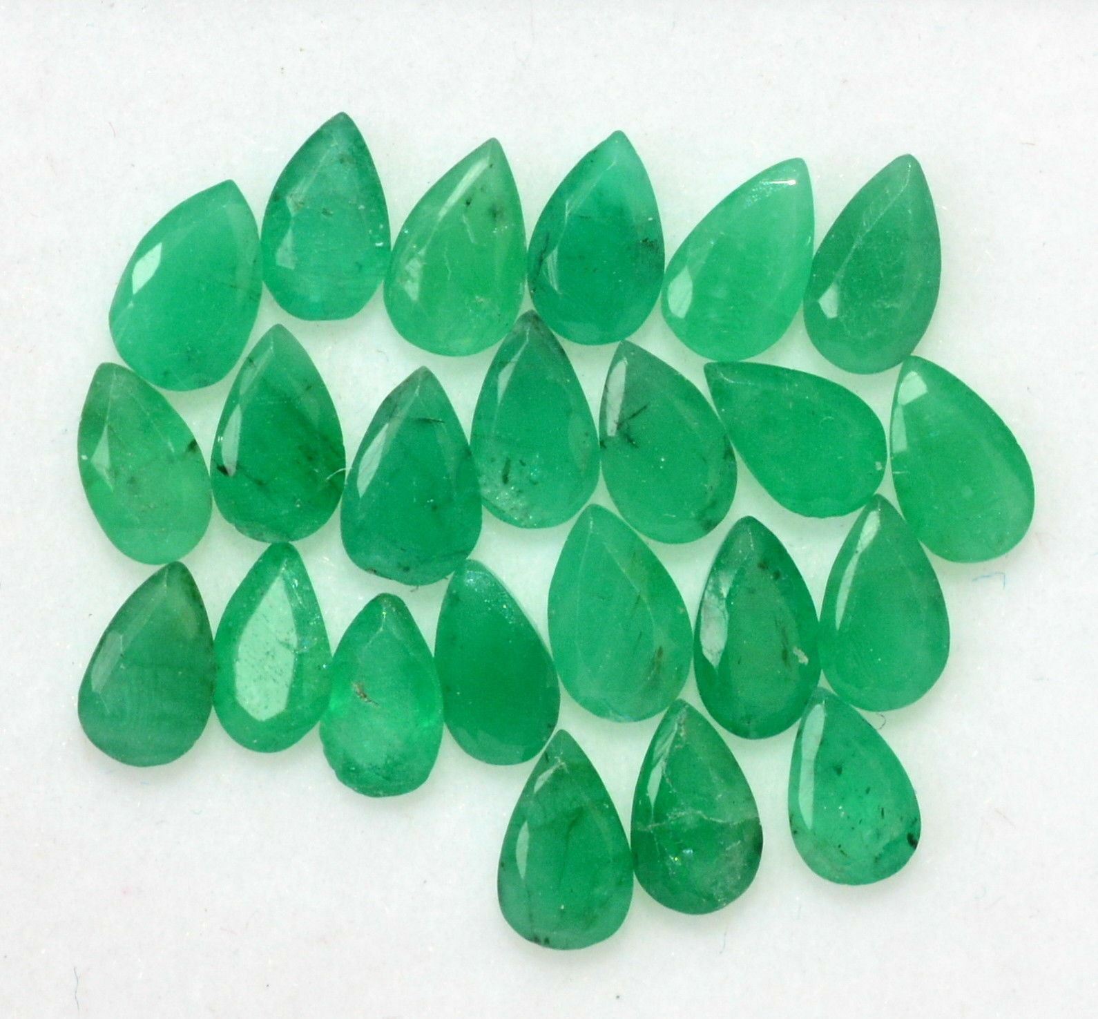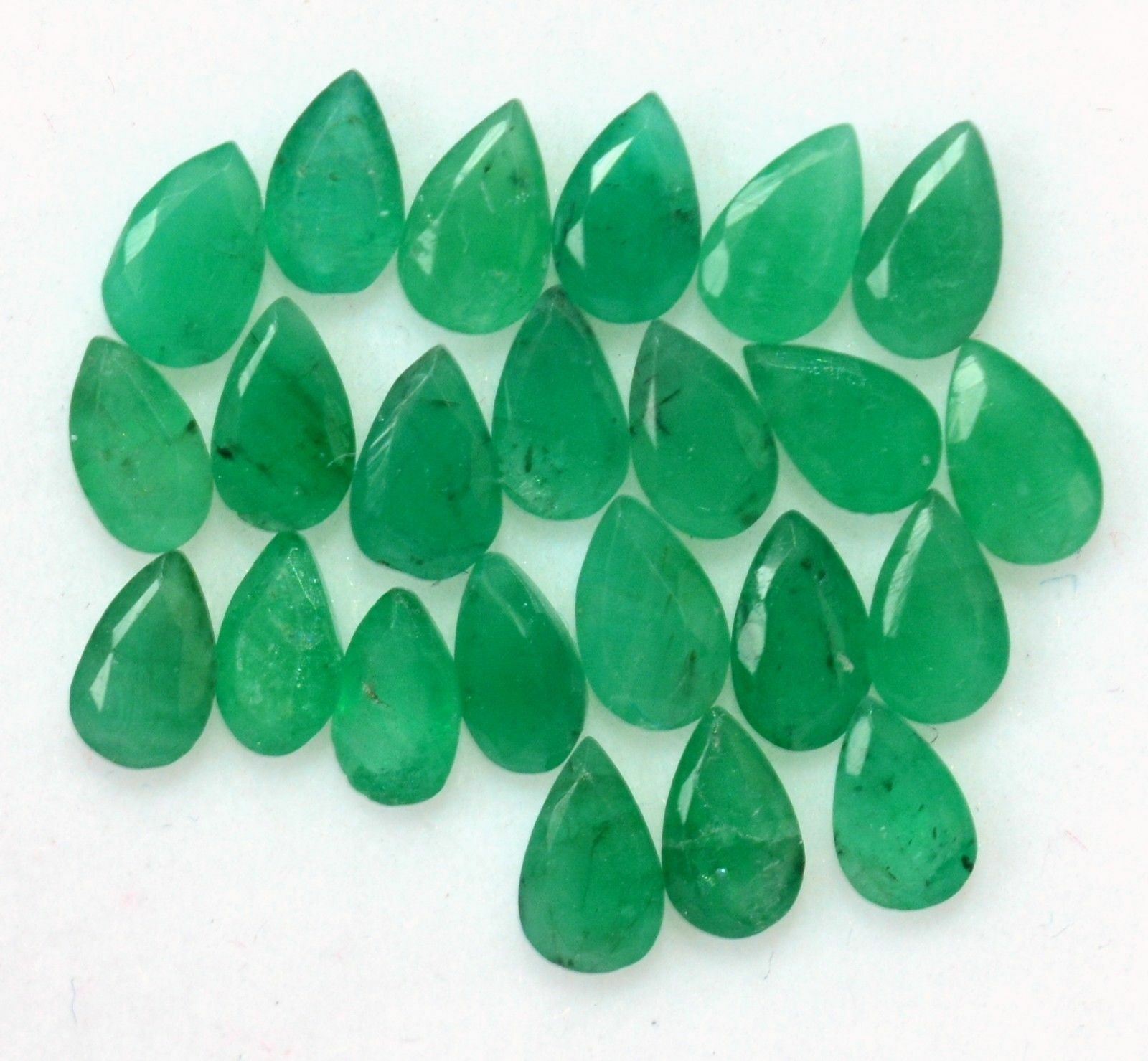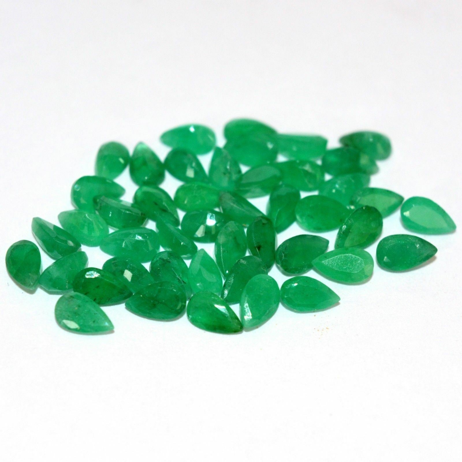 Gemstone Type : Emerald , Cut Grade : Excellent , Color : Green , Shape : Pear Cut, Size : 3x5 mm , Quantity : 100 Pieces , Weight : 19.00 Cts , Country of Origin : Zambia , Country of Manufacture : India