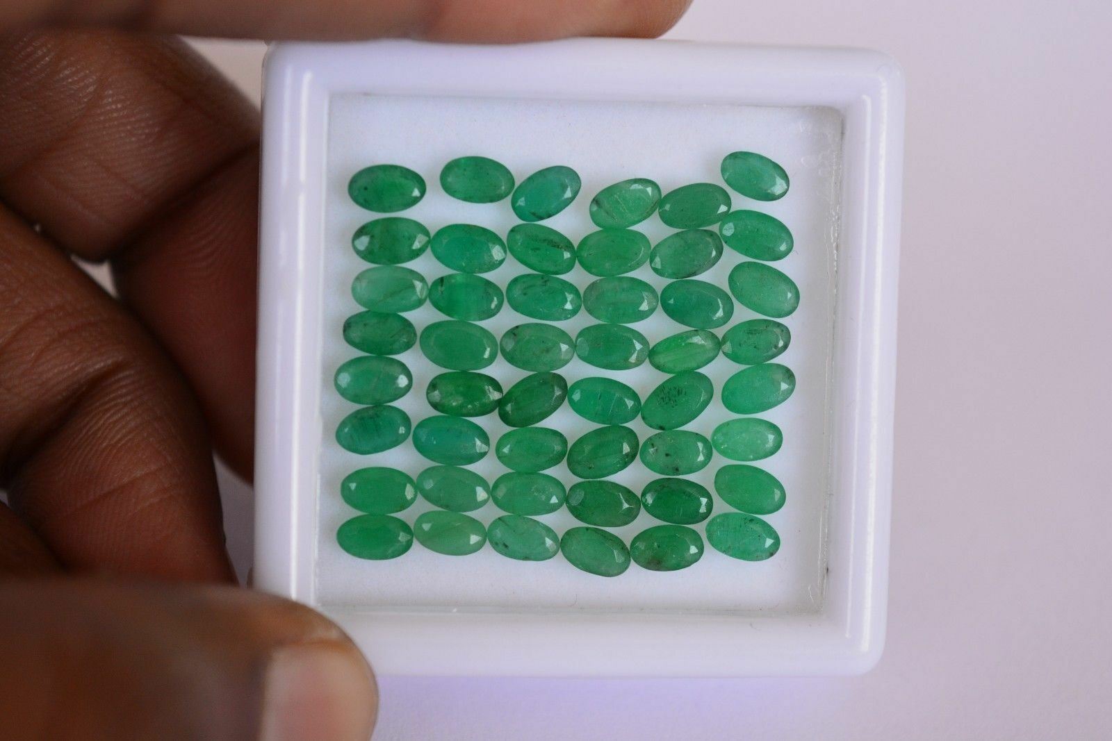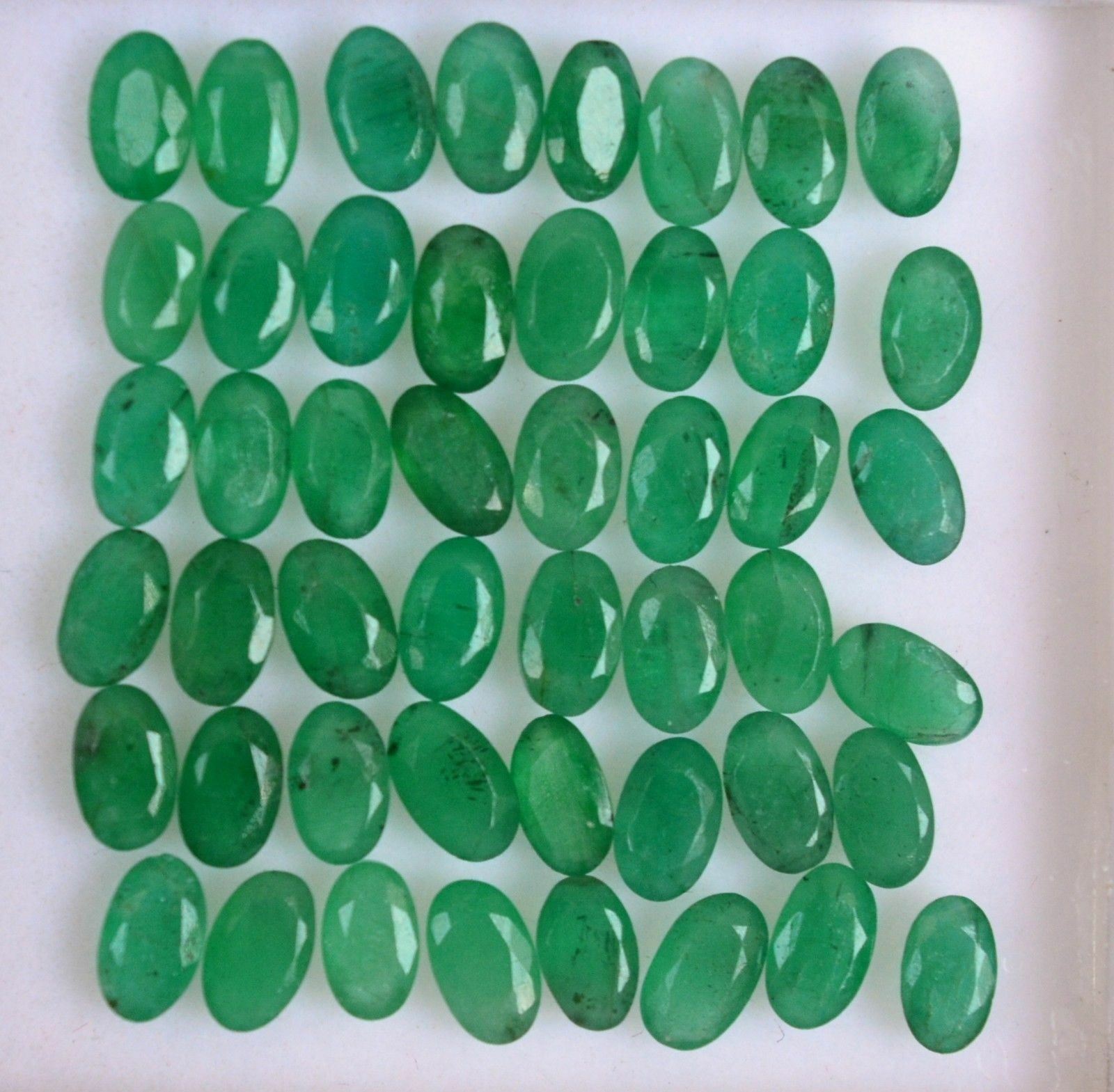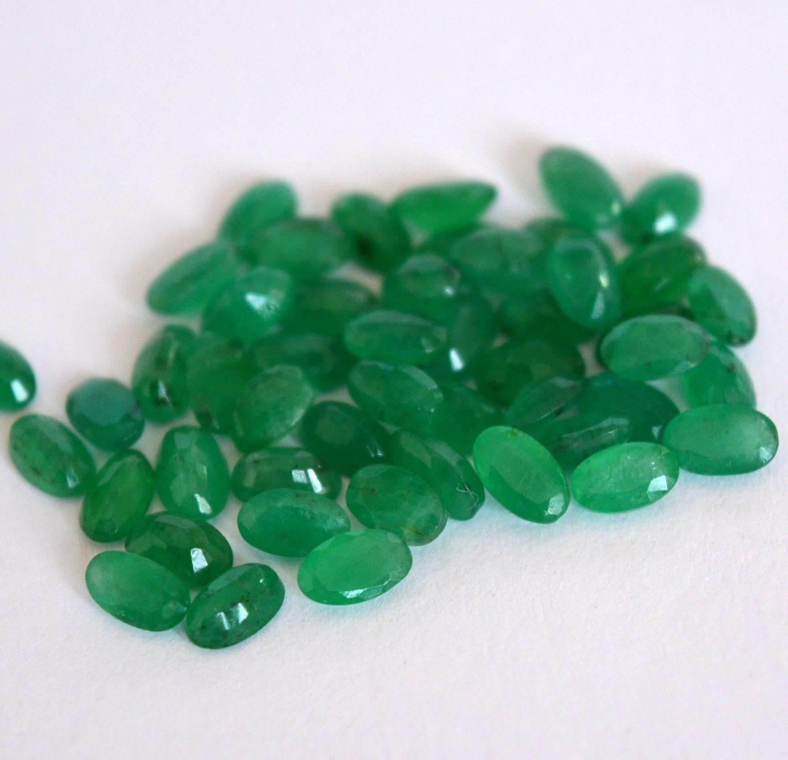 Gemstone Type : Emerald , Cut Grade : Excellent , Color : Green , Shape : Oval Cut, Size : 5x3 mm , Quantity : 100 Pieces , Weight : 22.80 Cts , Country of Origin : Zambia , Country of Manufacture : India