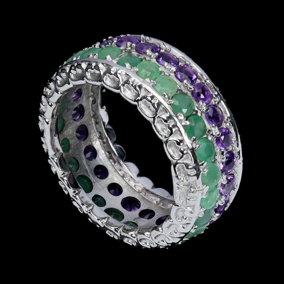 Natural Emerald & Amethyst Eternity Ring