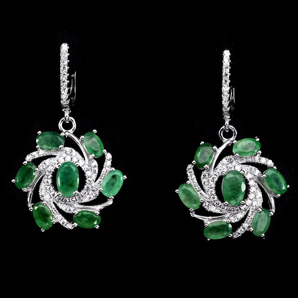 925 STERLING SILVER; PLATE -14K WHITE GOLD ; MAIN STONE -EMERALD; OTHER GEMS -CUBIC ZIRCONIA; TOTAL WEIGHT -35.72 CT (TOTAL WEIGHT OF SILVER + STONE) DIMENSION * STONE 5.0 X 3.0 TO 6.0 X 4.0 MM. * CZ 1.0 MM. * FACE EARRINGS 35.0 X 17.0 MM.;; MAIN STONE SHAPE -OVAL CUT; MAIN STONE COLOR -TOP RICH GREEN; TREATMENT -UNHEATED; ORIGIN BRAZIL-------------------------PENDANT DESCRIPTION---- TYPE OF METAL 925 STERLING SILVER; PLATE -14K WHITE GOLD; MAIN STONE -EMERALD; OTHER GEMS -CUBIC ZIRCONIA; TOTAL WEIGHT -13.80 CT (TOTAL WEIGHT OF SILVER + STONE) DIMENSION * STONE 5.0 X 3.0 TO 6.0 X 4.0 MM. * CZ 1.0 MM. * FACE PENDANT 25.0 X 17.0 MM. MAIN STONE SHAPE -OVAL CUT; TREATMENT -UNHEATED; ORIGIN BRAZIL