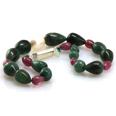 Natural Emerald, Ruby Teardrop Pearl Bracelet 69.72 ctw **|**|** Total CTW: 69.72; Dia/Gem Count: green, red and white ; Dia / Gem Shape :Smooth Teardrops ; Cut / Color: Excellent smooth, polished cut. Fantastic Natural colour. ; MSRP: $497