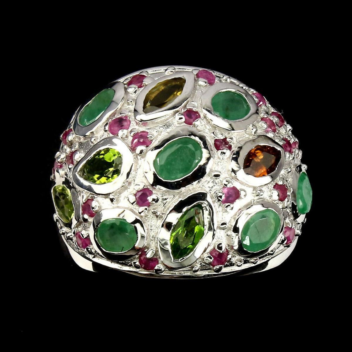 925 STERLING SILVER;PLATE14K WHITE GOLD;RING SIZE7(resizeable)MAIN STONEEMERALD;OTHER GEMSRUBY,TOURMALINE;TOTAL WEIGHT44.92 CT (TOTAL WEIGHT OF SILVER + STONE)DIMENSION* STONE 2.0 TO 5.0 X 3.0 MM. * RING SIZE 7.0 * FACE RING 23.0 X 19.0 MM.;MAIN STONE SHAPEOVAL CUT;MAIN STONE COLORTOP RICH GREEN;CLARITY/GRADETRANSPARENT;LUSTERGORGEOUS;TREATMENTUNHEATED;ORIGINBRAZIL;HARDNESS7.0 - 9.0;