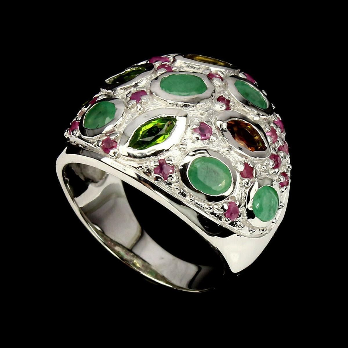 925 STERLING SILVER;PLATE14K WHITE GOLD;RING SIZE7(resizeable)MAIN STONEEMERALD;OTHER GEMSRUBY,TOURMALINE;TOTAL WEIGHT44.92 CT (TOTAL WEIGHT OF SILVER + STONE)DIMENSION* STONE 2.0 TO 5.0 X 3.0 MM. * RING SIZE 7.0 * FACE RING 23.0 X 19.0 MM.;MAIN STONE SHAPEOVAL CUT;MAIN STONE COLORTOP RICH GREEN;CLARITY/GRADETRANSPARENT;LUSTERGORGEOUS;TREATMENTUNHEATED;ORIGINBRAZIL;HARDNESS7.0 - 9.0;