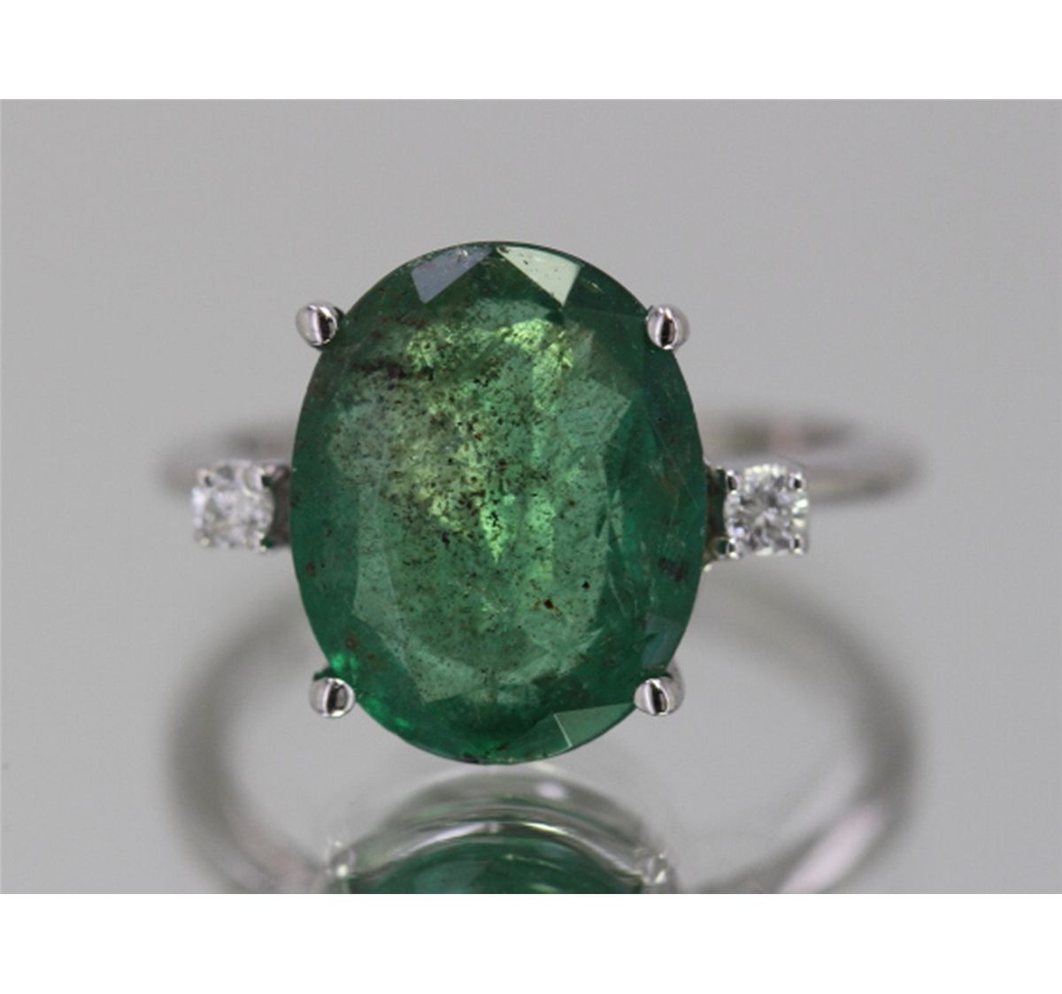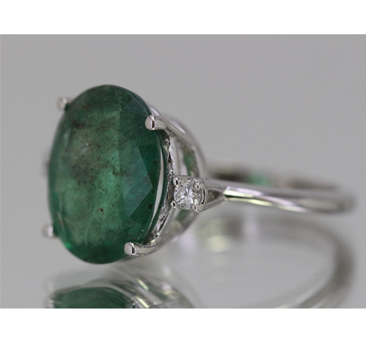 14kt White Gold 2.12Approx grams, 2.89ct Natural Emerald Nice Dark Green Oval, .08cttw Round Diamond, Appraisal Estimate $6000, Nice Solitaire Style Great for a Gift
