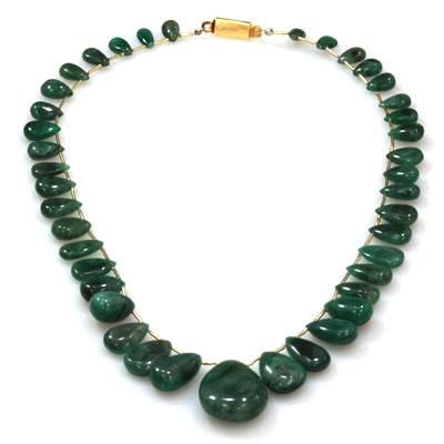 Total CTW: 199.8; Dia/Gem Count: Moss Green ; Dia / Gem Shape :Smooth Drops ; Cut / Color: Excellent smooth, polished cut. Fantastic Natural colour. ; MSRP: $1424