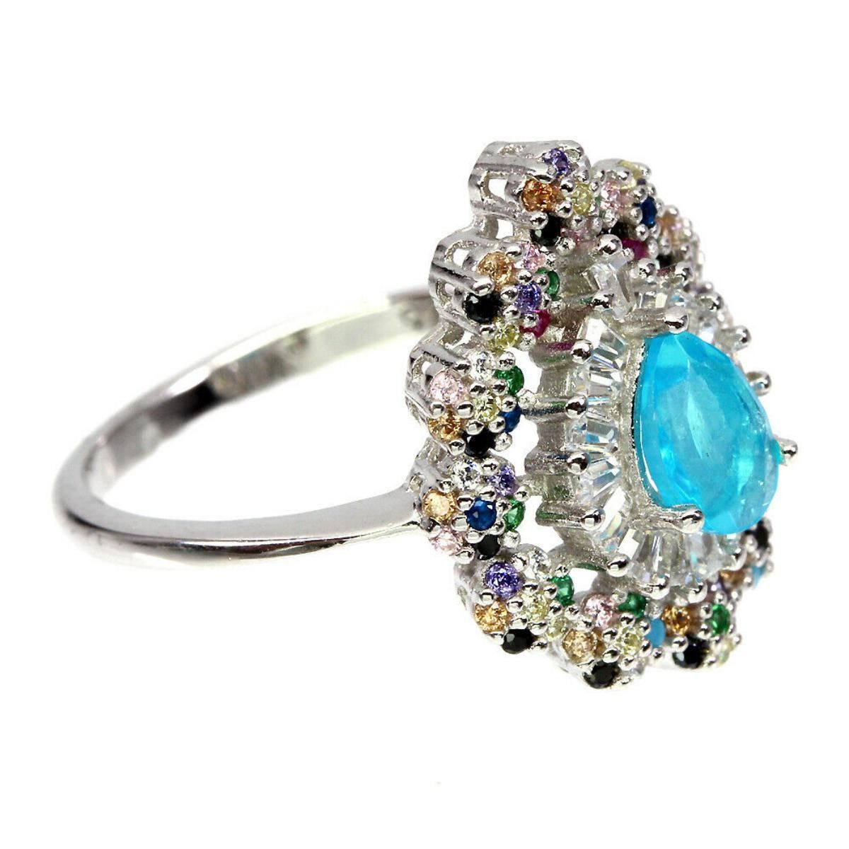 925 STERLING SILVER;PLATE14K WHITE GOLD;RING SIZE(resizeable)8;MAIN STONE-BLUE FIRE OPAL;OTHER GEMS-CUBIC ZIRCONIA;TOTAL WEIGHT-3.82 GRAM (TOTAL WEIGHT OF SILVER + STONE)DIMENSION* STONE 7.0 X 5.0 MM. * CZ 1.0 TO 2.0 X 1.5 MM. * RING SIZE 8.0 * FACE RING 18.0 X 16.0 MM.MAIN STONE SHAPE-PEAR CUTMAIN STONE COLOR-TOP RICH BLUECLARITY/GRADE-IF TO VVSORIGIN-ETHIOPIAHARDNESS-5.5 - 6.5
