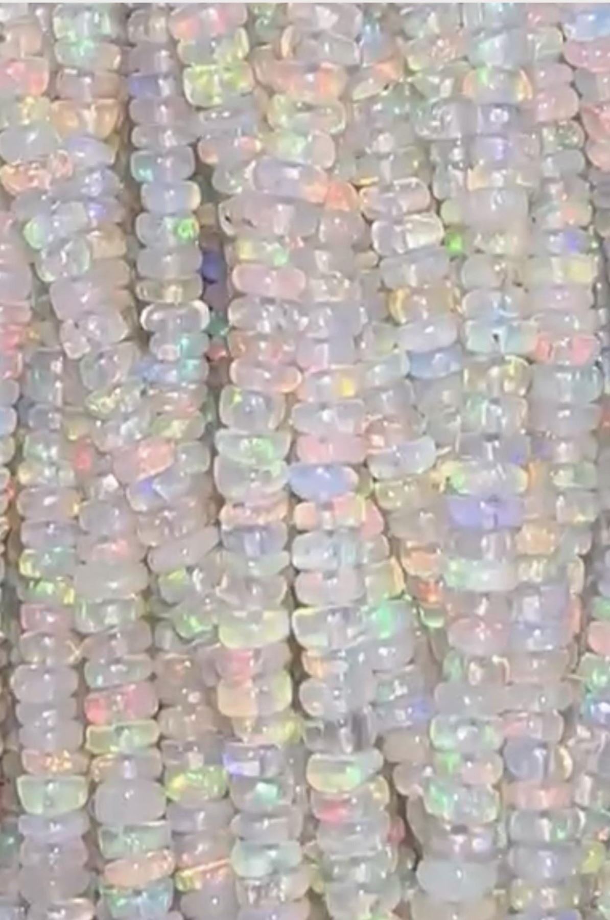 Natural Etopian Untreated White Opal Necklace..........7 Lines....Natural white Opal .........There is no treatment to these stones in the Necklace...Please note this image is taken with Torch light to get the full glow of these opals but actual color in natural light is white as showed in 2nd image..