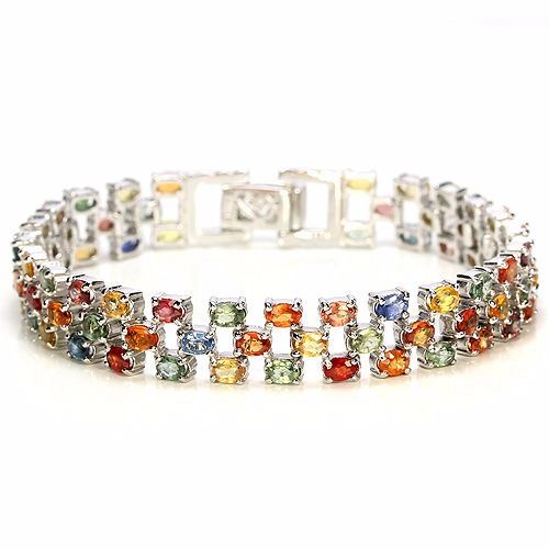 GENUINE SONGEA MULTI COLOR SAPPHIRE 925 SILVER BRACELET 14K WHITE GOLD COATING;LENGTH OF ITEM (Inch.)-7.00 ;ITEM QUANTITY-1;STONE SHAPE-OVAL FACET CUT;STONE DIMENSION-4 X 3 MM.;ITEM WEIGHT-24.17 GRAM;COLOR-MULTI COLOR;CLARITY-VVS, VS SI;LUSTER-ENCHANTING;TREATMENT-HEATED;ORIGIN OF STONE-AFRICA THAILAND;HARDNESS9
