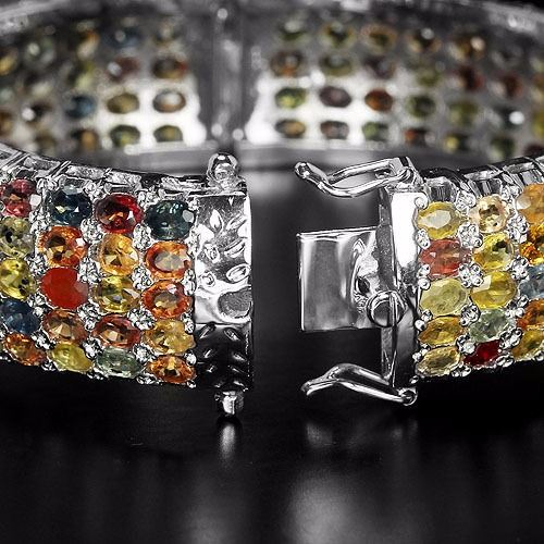 GENUINE MULTI COLOR SAPPHIRE 925 SILVER BANGLE 14K WHITE GOLD COATING; LENGTH OF ITEM - 2.50 Inch ;ITEM QUANTITY-1;STONE SHAPE-OVAL;STONE DIMENSION-4 X 3 MM.;ITEM WEIGHT-47.7 GRAM;COLOR-MULTI COLOR;CLARITYVS-SI & TRANSLUCENT;LUSTER-MAJESTIC;TREATMENT-HEATED;ORIGIN OF STONE-AFRICA & THAILAND;HARDNESS-9;