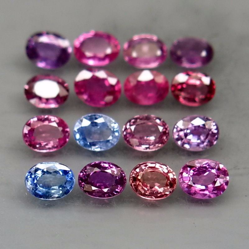 Natural Sapphire....SHAPE :Oval;WEIGHT :3.77 Ct.;SIZE :4 X 3 Mm.;QUANTITY :16 Pieces;COLOR :Fancy Colour;CLARITY :Vs Si;LUSTER :Superior;ORIGIN :Africa;TREATMENT :Heated Only;HARDNESS :9;