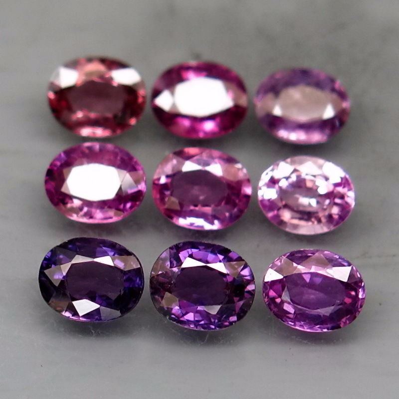 Natural Sapphire.SHAPE :Oval;WEIGHT :4.00 Ct.;SIZE :5 X 4 Mm.;QUANTITY :9 Pieces;COLOR :Fancy Colour;CLARITY :Vs & Si;LUSTER :Superior;ORIGIN :Africa;TREATMENT :Heated Only;HARDNESS :9;