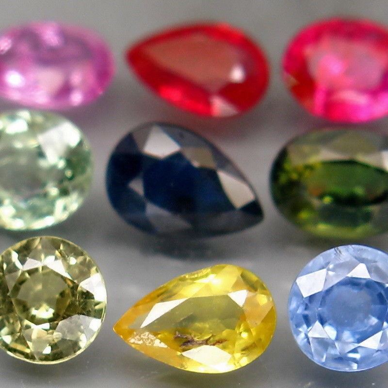 Natural Sapphire SHAPE Mixed Shape; WEIGHT4.25 Ct.; SIZE 4.5x4.5 X to X 6x4 mm; QUANTITY 9 Pieces; COLOR Fancy Color;CLARITY VS SI; LUSTER Superior; ORIGIN Africa; TREATMENT Heated; HARDNESS 9