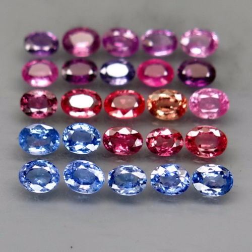 Natural Sapphire.......SHAPE :Oval;WEIGHT :4.60 Ct.;SIZE :3.5 X 2.5 To 4 X 3 Mm.QUANTITY :25 Pieces;COLOR :Fancy Colour;CLARITY :Vs & Si;LUSTER :Superior;ORIGIN :Africa;TREATMENT :Heated Only;HARDNESS :9