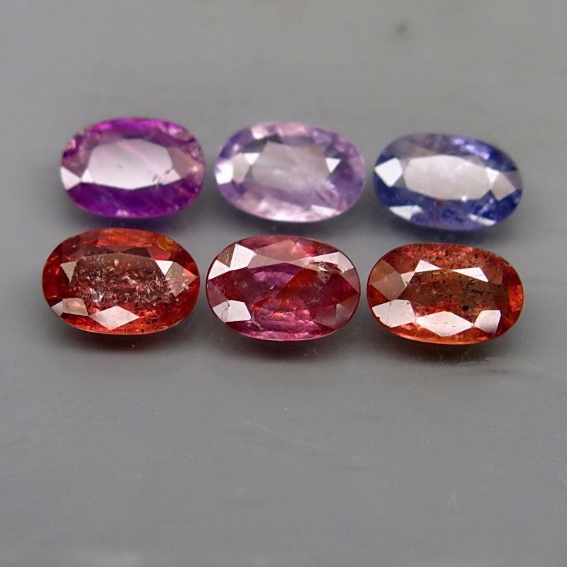 Unheated SapphireSHAPE :Oval;WEIGHT :5.07 Ct.;SIZE :7 X 4.5 To 7 X 5 Mm.;QUANTITY :6 Pieces;COLOR :Fancy Colour;CLARITY :I1-i2;LUSTER :Superior;ORIGIN :Tanzania;TREATMENT :Unheated;HARDNESS :9;