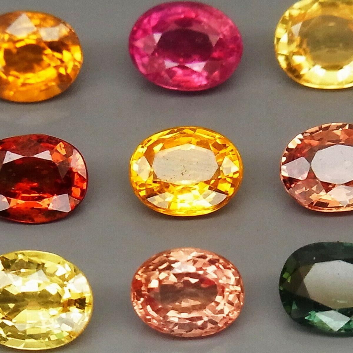 Natural Sapphire ;SHAPE Oval WEIGHT 3.93 Ct.SIZE 5 X 4 mm QUANTITY 9 PiecesCOLORFancy ColorCLARITYVS & SILUSTERSuperiorORIGINSongea, Africa TREATMENT ; HARDNESS 9