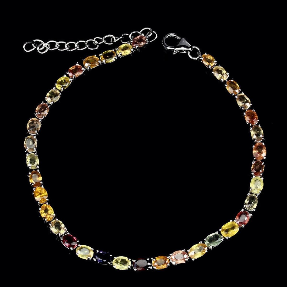 925 STERLING SILVER;PLATE14K WHITE GOLD;/LENGTH (INCHES)7MAIN STONESAPPHIRE;TOTAL WEIGHT40.95 CT (TOTAL WEIGHT OF SILVER + STONE)DIMENSION* STONE 4.0 X 3.0 MM. * FACE BRACELET 171.0 X 3.0 MM.MAIN STONE SHAPEOVAL CUT;MAIN STONE COLORMULTI-COLOR;CLARITY/GRADEIF TO VVS;LUSTERATTRACTIVE;TREATMENTHEATED;ORIGINSONGEA - AFRICA;HARDNESS9;