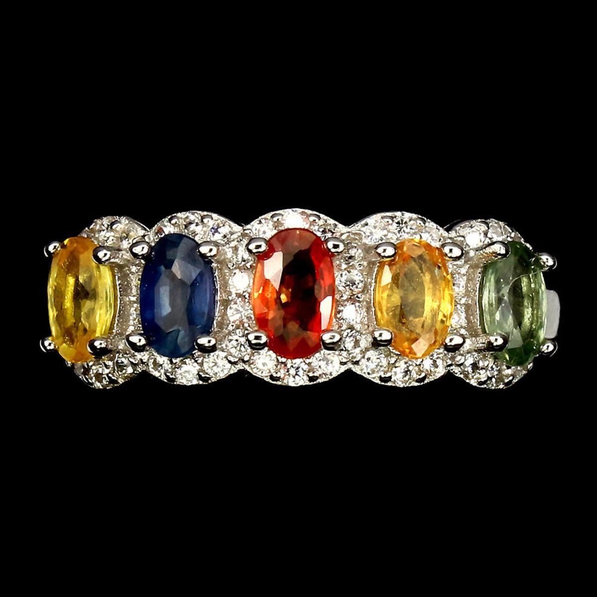 925 STERLING SILVER;PLATE14K WHITE GOLD;RING SIZE6(resizeable)MAIN STONESAPPHIRE;OTHER GEMSCUBIC ZIRCONIA;TOTAL WEIGHT20.88 CT (TOTAL WEIGHT OF SILVER + STONE)DIMENSION* STONE 5.0 X 3.0 MM. * CZ 1.0 MM. * RING SIZE 6.0 * FACE RING 20.0 X 7.0 MM.;MAIN STONE SHAPEOVAL CUT;MAIN STONE COLORMULTI-COLOR;CLARITY/GRADEIF TO VVS;LUSTERDELUXE;TREATMENTHEATED;ORIGINSONGEA - AFRICA;HARDNESS9;