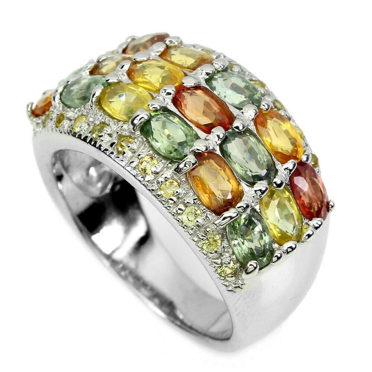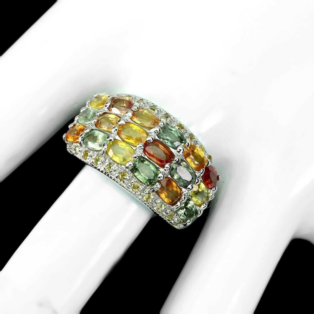 925 STERLING SILVER;PLATE-14K WHITE GOLD;RING SIZE/resizeable-9;MAIN STONE-SAPPHIRE;OTHER GEMS-SAPPHIRE ;TOTAL WEIGHT-9.62 GRAM (TOTAL WEIGHT OF SILVER + STONE)DIMENSION-* STONE 1.5 TO 5.0 X 3.0 MM.* RING SIZE- 9.0;* FACE RING- 25.0 X 14.0 MM.;MAIN STONE SHAPE-OVAL CUT;MAIN STONE COLOR-MULTI-COLOR;CLARITY/GRADE-IF TO VVS;TREATMENT-HEATED ONLY;ORIGIN-SONGEA - AFRICA;HARDNESS-9.0;