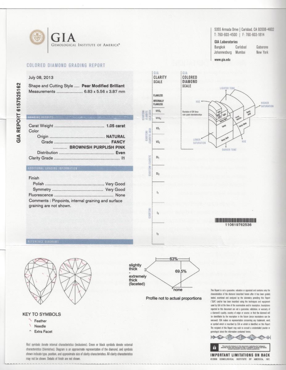 This is a Natural Colored Brownish Purplish Pink Pear Diamond. It is 1.05cts, I2. GIA CERTIFIED!!!