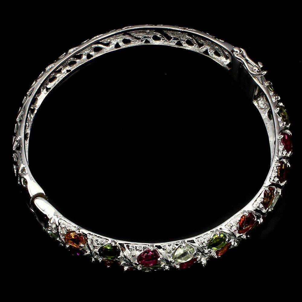 925 STERLING SILVER.......PLATE-14K WHITE GOLD;MAIN STONETOURMALINE;OTHER GEMS;TOTAL WEIGHT118.78 CT (TOTAL WEIGHT OF SILVER + STONE);DIMENSION* STONE 5.0 X 4.0 MM. * DIAMETER 2.4 INCHES. * FACE ;BANGLE 68.0 X 10.0 MM.;MAIN STONE SHAPEPEAR CUT;MAIN STONE COLORMULTI-COLOR;CLARITY/GRADEIF TO VVS;LUSTERPRECIOUS;TREATMENTUNHEATED;ORIGINBRAZIL;HARDNESS7.0 - 7.5