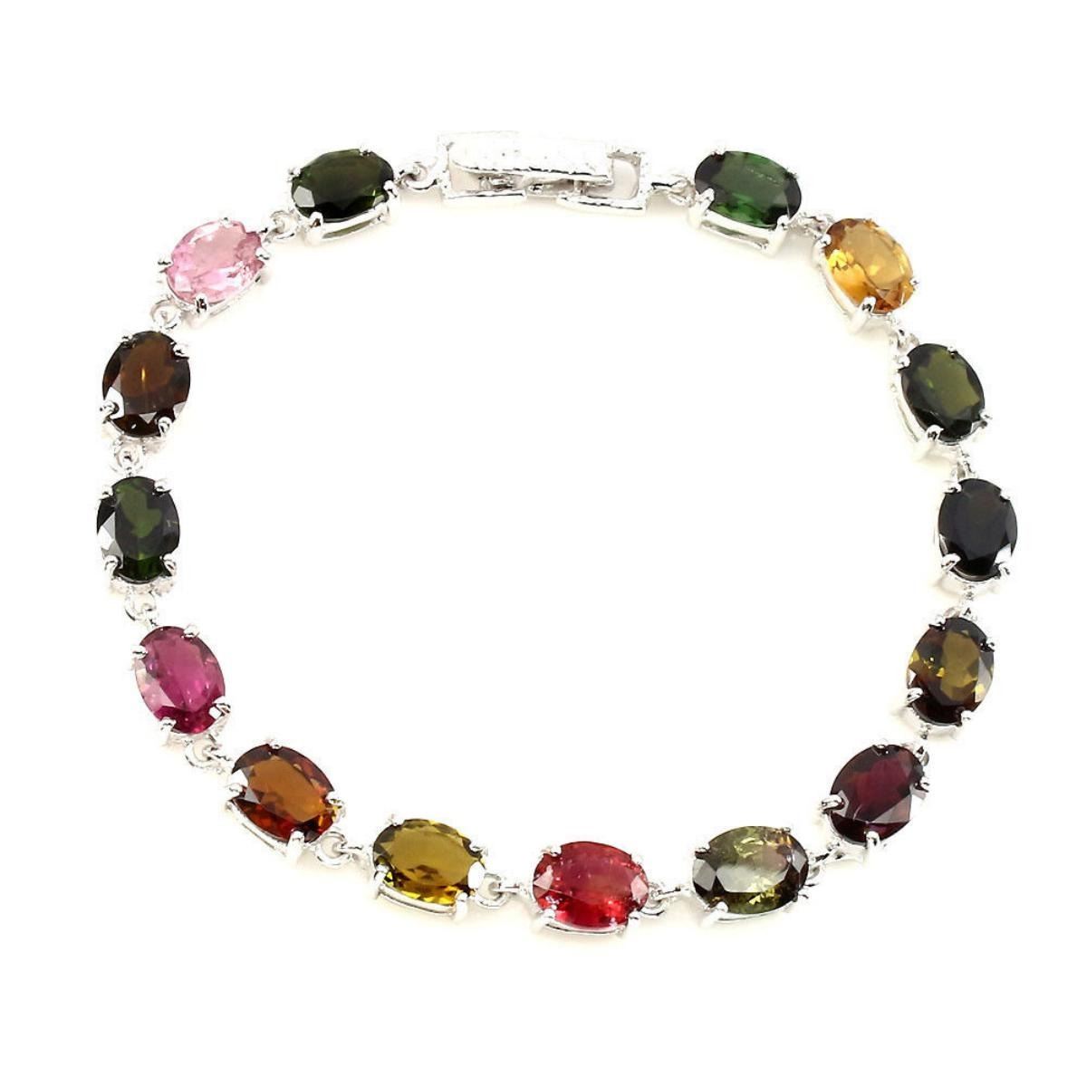 925 STERLING SILVER;PLATE14K WHITE GOLD;LENGTH (INCHES)7.5;MAIN STONETOURMALINE;TOTAL WEIGHT69.24 CT (TOTAL WEIGHT OF SILVER + STONE)DIMENSION* STONE 8.0 X 6.0 MM. * FACE BRACELET 170.0 X 6.0 MM.MAIN STONE SHAPEOVAL CUT;MAIN STONE COLORTOP FANCY COLORS;CLARITY/GRADEIF TO VVS;LUSTERATTRACTIVE;TREATMENTUNHEATED;ORIGINBRAZIL;HARDNESS7.0 - 7.5