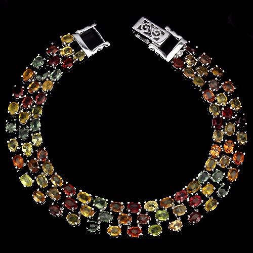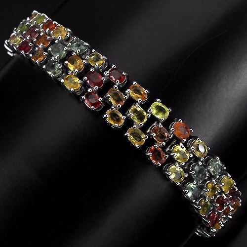FANCY SAPPHIRE (NATURAL) 14K WHITE GOLD COATING 925 SILVER BRACELET;UNIT OF ITEM (S):1 PIECE;WEIGHT (CT.):127.06 CT. (total weight of silver + stone)DIMENSION:* STONE 4.0 X 3.0 MM.* LENGTH 7.0 INCHES. * FACE BRACELET 163.0 X 11.0 MM.;SHAPE/CUT:OVAL FACET;COLOR:TOP FANCY COLORS;CLARITY/GRADE:IF TO VVS;LUSTER:GORGEOUS;TREATMENT:HEATED & UNHEATED;ORIGIN:SONGEA - AFRICA;HARDNESS:9.0