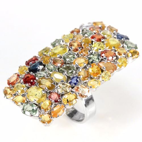 BIG GENUINE AAA MULTI COLOR SAPPHIRE 925 SILVER RING 14K WHITE GOLD COATING; STONE SHAPEOVAL & ROUND FACET CUT..........Ring Size 7;STONE DIMENSION7 X 5 MM. , 6 X 4 MM. , 5 X 3 MM. , 5 X 4 MM. & 4 X 3 MM.;ITEM WEIGHT15.4 GRAM;COLORMULTI COLOR;CLARITYVVS - VS;LUSTERGORGEOUS;TREATMENT-HEATED;ORIGIN OF STONEAFRICA & THAILAND;HARDNESS9.0;FACE OF RING 46 X 24 MM.