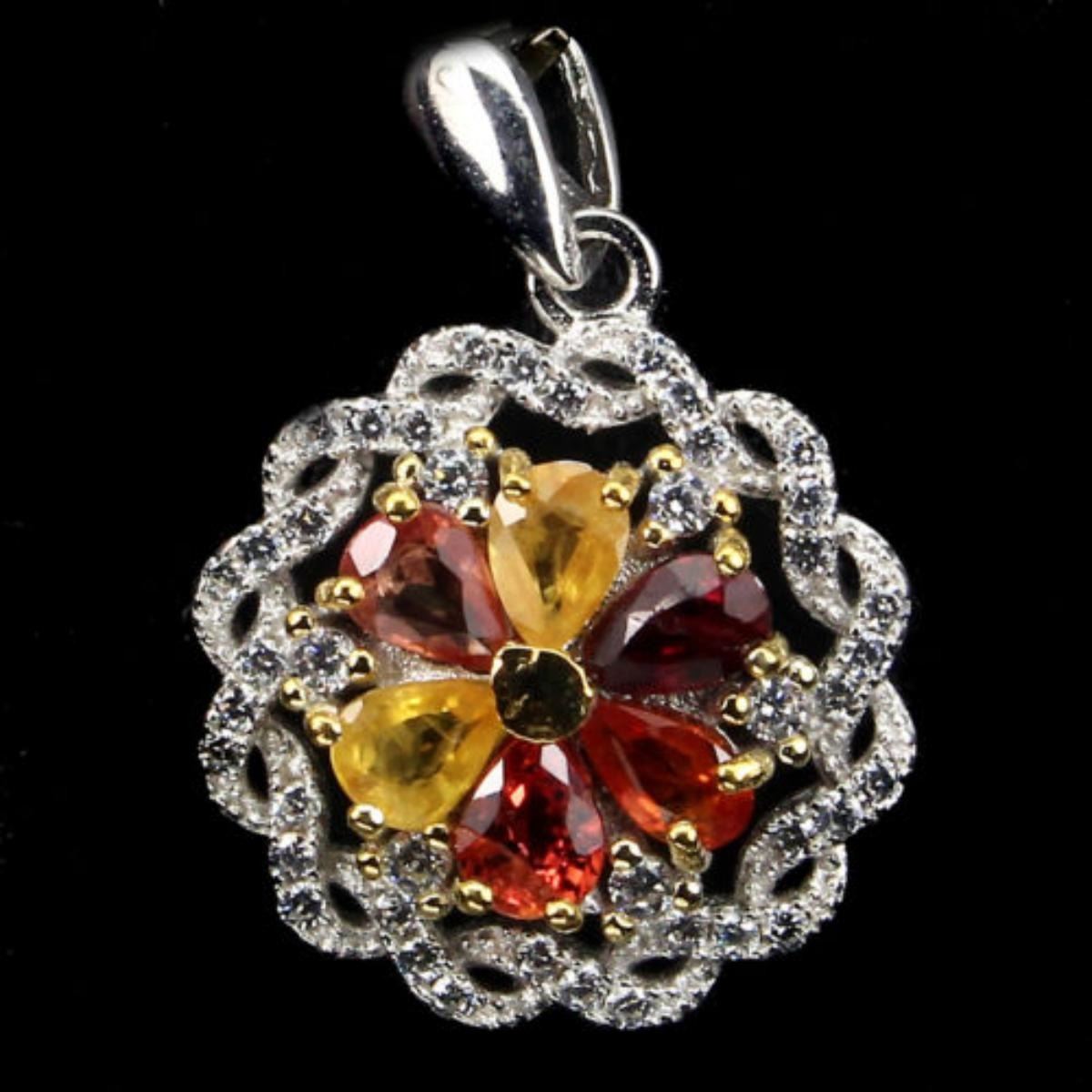 925 STERLING SILVER..........PLATE-14K WHITE GOLD.MAIN STONE-SAPPHIRE;OTHER GEMS-CUBIC ZIRCONIA;TOTAL WEIGHT-13.95 CT (TOTAL WEIGHT OF SILVER + STONE);DIMENSION-* STONE 4.0 X 3.0 MM. * CZ 1.0 TO 1.5 MM. * FACE PENDANT 24.0 X 17.0 MM.;MAIN STONE SHAPE-PEAR CUT;MAIN STONE COLOR-MULTI-COLOR;CLARITY/GRADE-TRANSPARENT;LUSTER-ELEGANT;TREATMENT-HEATED;ORIGINSONGEA - AFRICA;HARDNESS9
