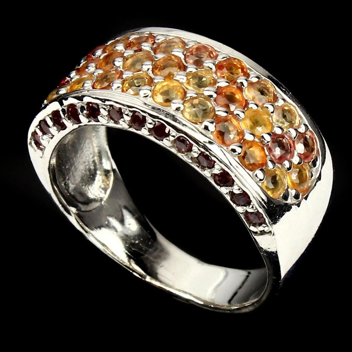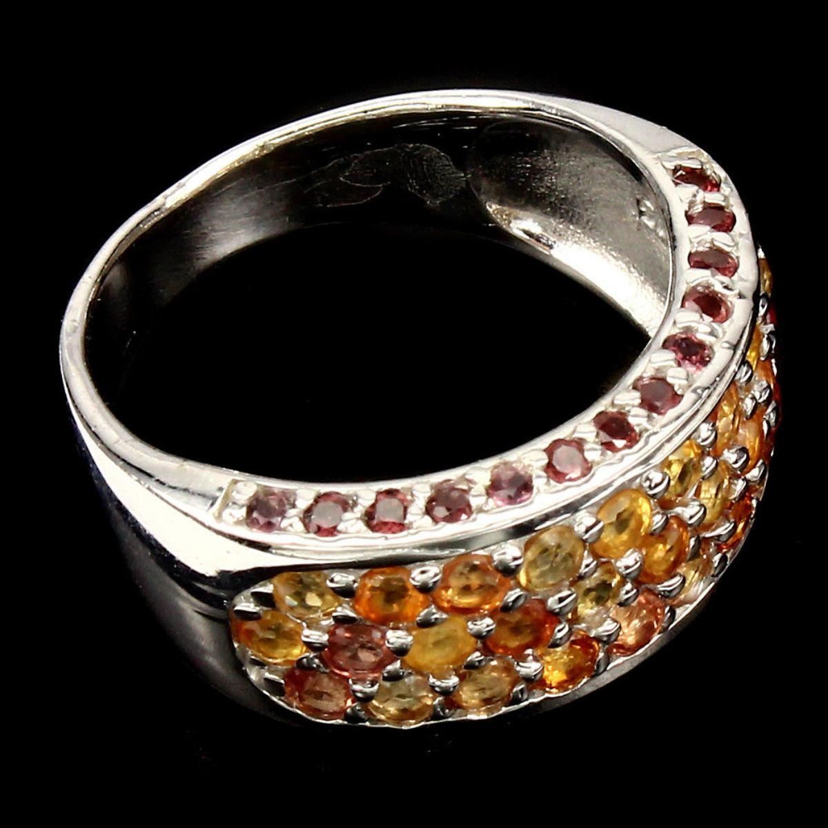 925 STERLING SILVER PLATE 14K WHITE GOLD RING SIZE 9; MAIN STONE SAPPHIRE OTHER GEMS RHODOLITE GARNET TOTAL WEIGHT 31.88 CT (TOTAL WEIGHT OF SILVER + STONE) DIMENSION * STONE 1.5 TO 2.0 MM. * RING SIZE 9.0 * FACE RING 22.0 X 10.0 MM. MAIN STONE SHAPE ROUND CUT MAIN STONE COLOR MULTI-COLOR CLARITY/GRADE IF TO VVS LUSTER ELEGANT TREATMENT HEATED ORIGIN SONGEA - AFRICA HARDNESS 7.0 - 9.0